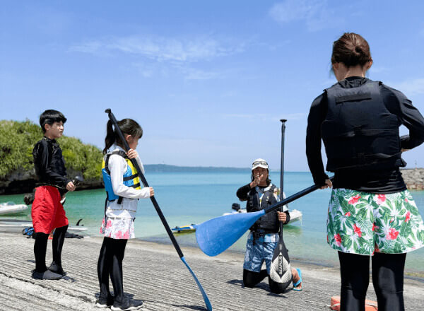 ツアーの最初にパドルの使い方、SUPの乗り方、方向転換の仕方などガイドが丁寧に説明させていただきますのでご安心ください。