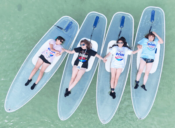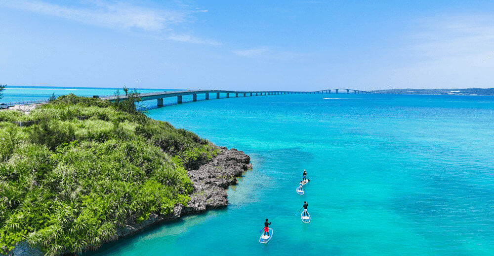 沖縄・宮古島で大人気のクリアSUPを楽しめる貸切ツアーです。一面には宮古島の海と空、そして足元の透き通った海にはサンゴとカラフルな魚たちの世界が広がり、まさに海のお散歩。カメラスタッフが同行し、アクティビティシーンの写真撮影もおまかせ。